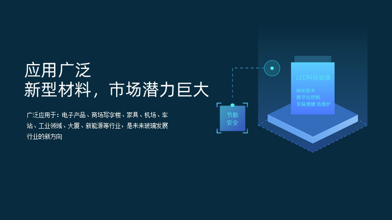 科技玻璃廣泛應(yīng)用于:電子產(chǎn)品、商場(chǎng)寫字樓、家具、機(jī)場(chǎng)、車站、工業(yè)領(lǐng)域、大廈、新能源等行業(yè),是未來玻璃發(fā)展行業(yè)的新方向。